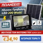 ΕΞΩΤΕΡΙΚΟΣ ΗΛΙΑΚΟΣ/ΦΩΤΟΒΟΛΤΑΙΚΟΣ ΠΡΟΒΟΛΕΑΣ LED 200w ΜΕ ΤΗΛΕΧΕΙΡΙΣΤΗΡΙΟ ΚΑΙ ΑΙΣΘΗΤΗΡΑ ΦΩΤΟΣ
